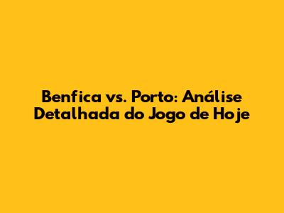 Benfica Vs. Porto: Análise Do Jogo De Hoje