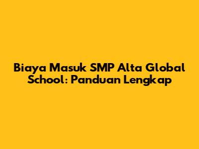 Biaya Masuk SMP Alta Global School: Panduan Lengkap