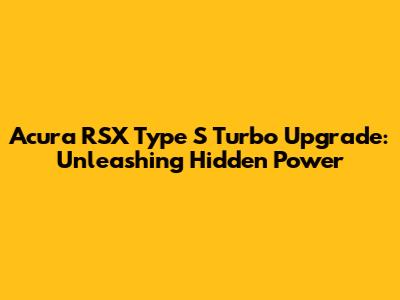 Boost Your Acura RSX Type S: Turbo Upgrade Guide