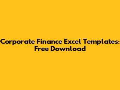 Corporate Finance Excel Templates: Free Download
