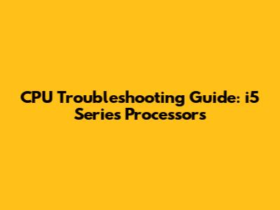 CPU Troubleshooting Guide: I5 Series Processors