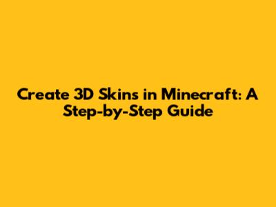Create 3D Skins In Minecraft: A Step-by-Step Guide