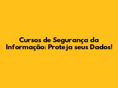 Cursos De Segurança Da Informação: Proteja Seus Dados!