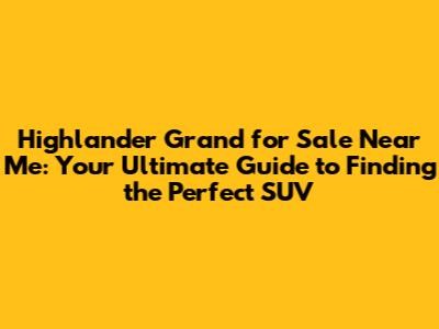 Where to Find a Highlander Grand for Sale Near You
