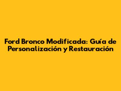 Ford Bronco Modificada: Guía De Personalización Y Restauración