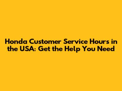 Honda Customer Service Hours In The USA