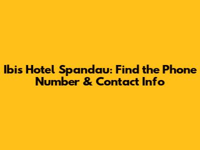 Ibis Hotel Spandau: Find The Phone Number & Contact Info