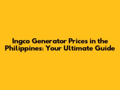 Ingco Generator Prices In The Philippines: A Comprehensive Guide