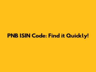 PNB ISIN Code: Find It Quickly!
