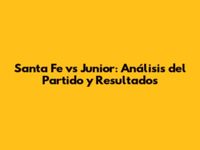 Santa Fe Vs Junior: Análisis Del Partido Y Resultados