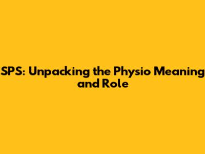 SPS: Unpacking The Physio Meaning And Role