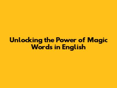 Unlocking The Power Of Magic Words In English
