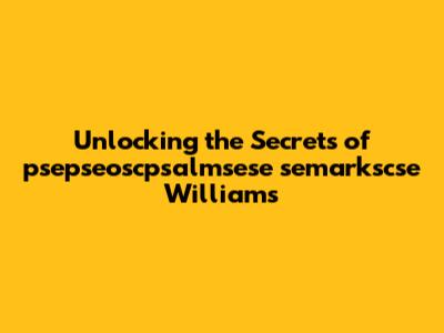Unlocking The Secrets Of Psepseoscpsalmsese Semarkscse Williams