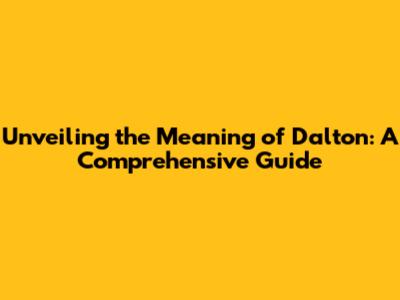Unveiling The Meaning Of Dalton: A Comprehensive Guide